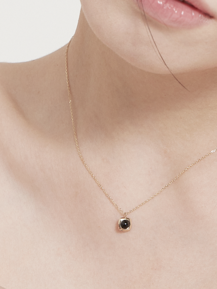 14K Yellow Gold Black Spinel UFO Necklace