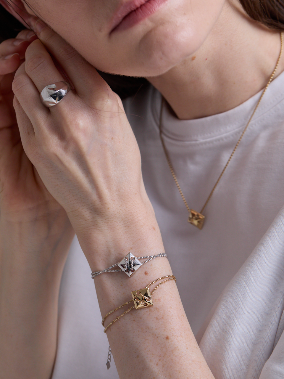 Pyramid Double Chain Bracelet (Yellow Gold)