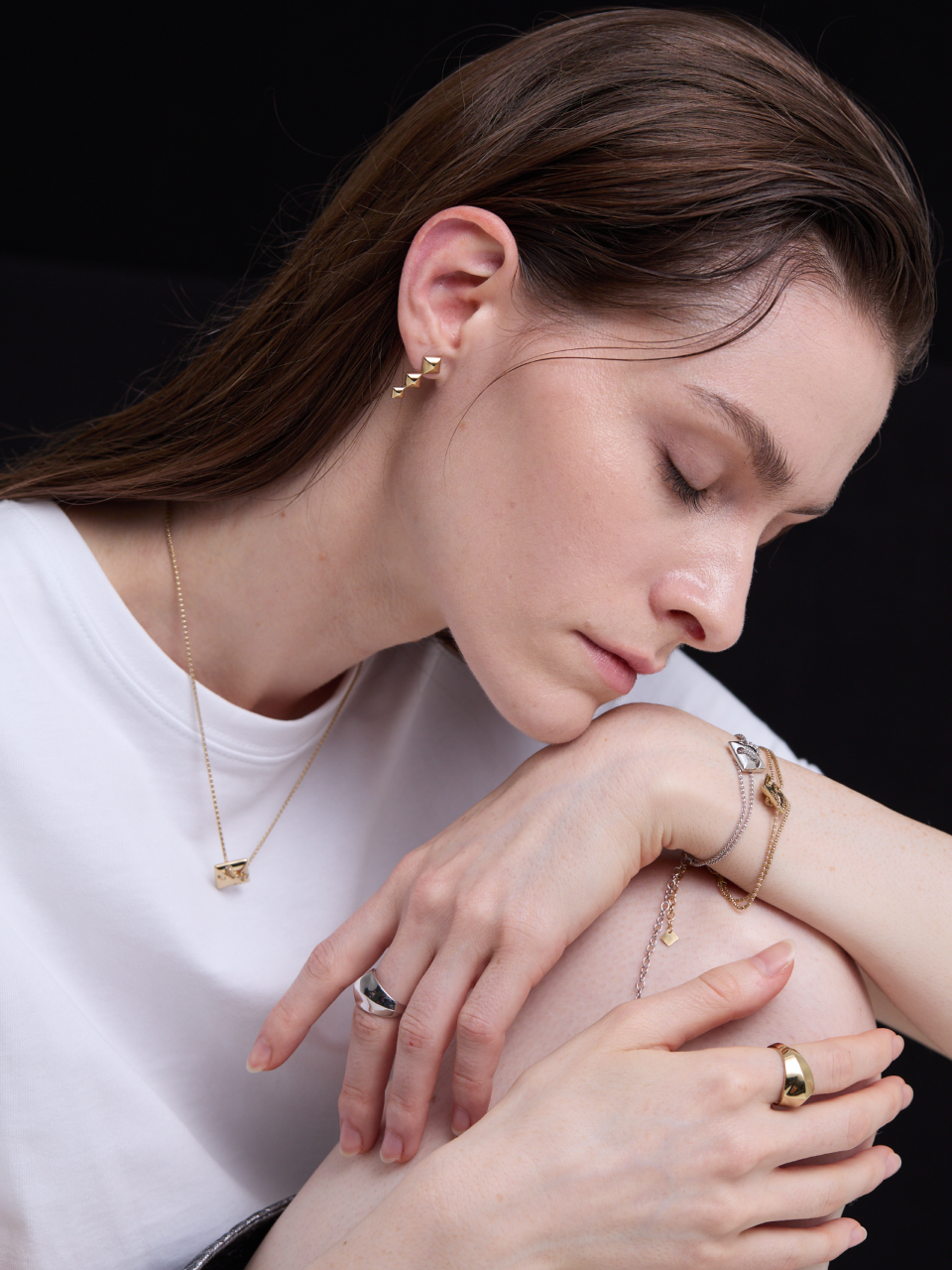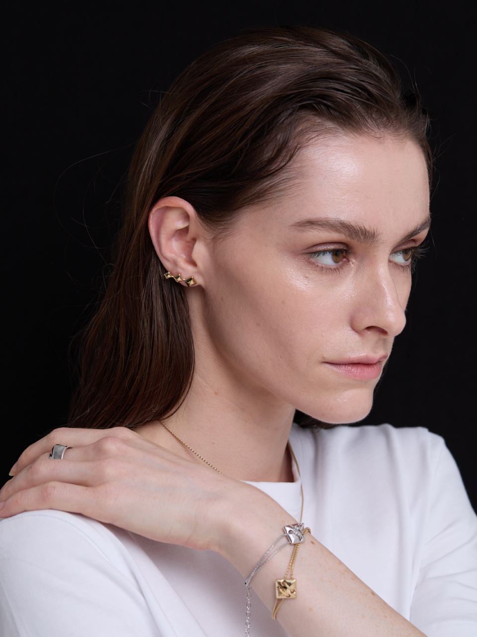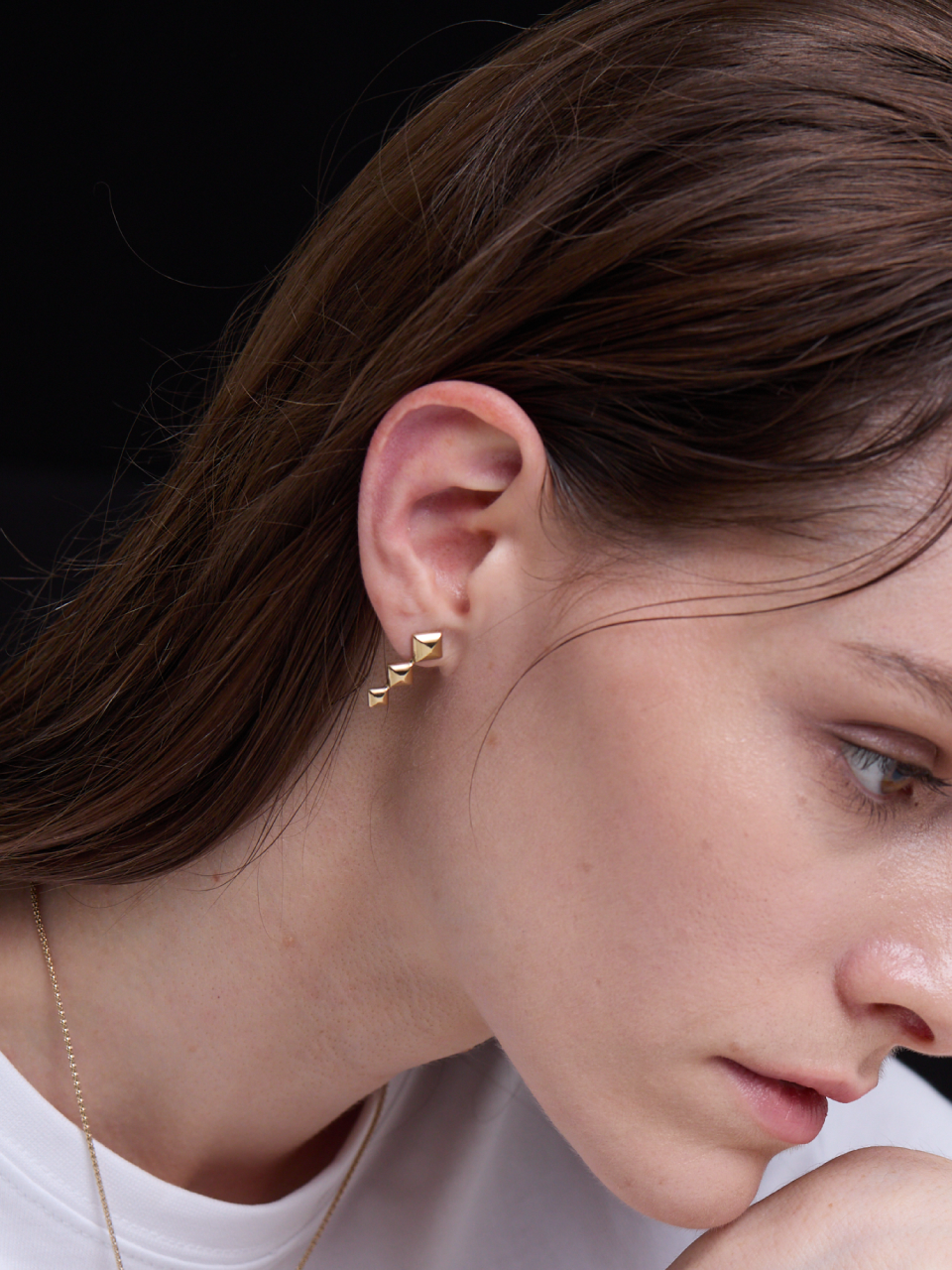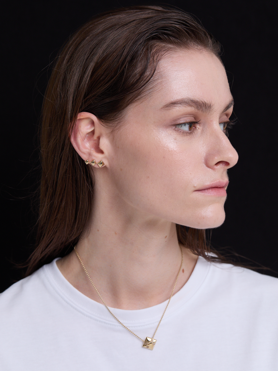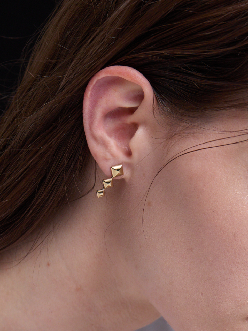 Triple Pyramid Stud Earrings (Gold)
