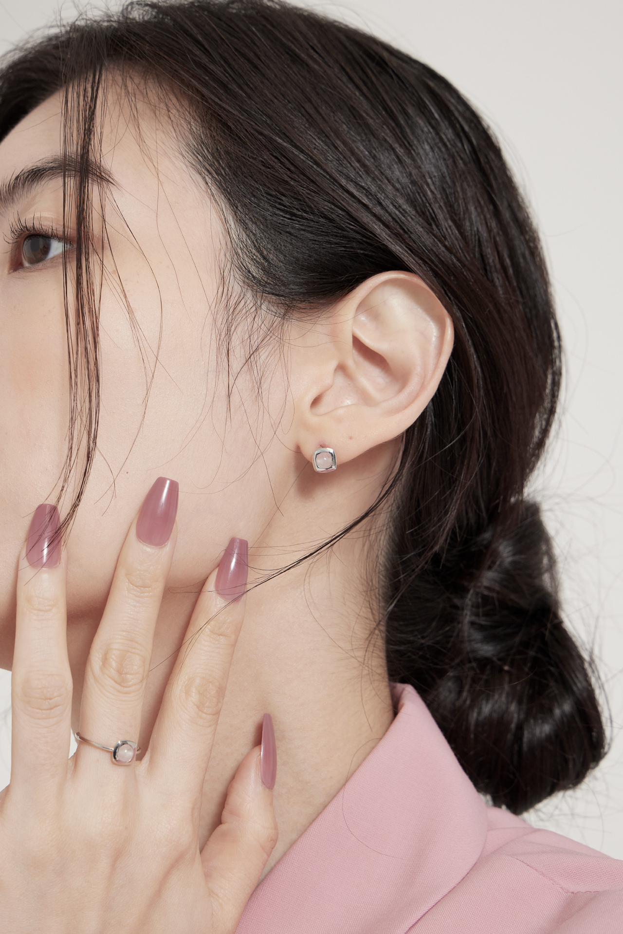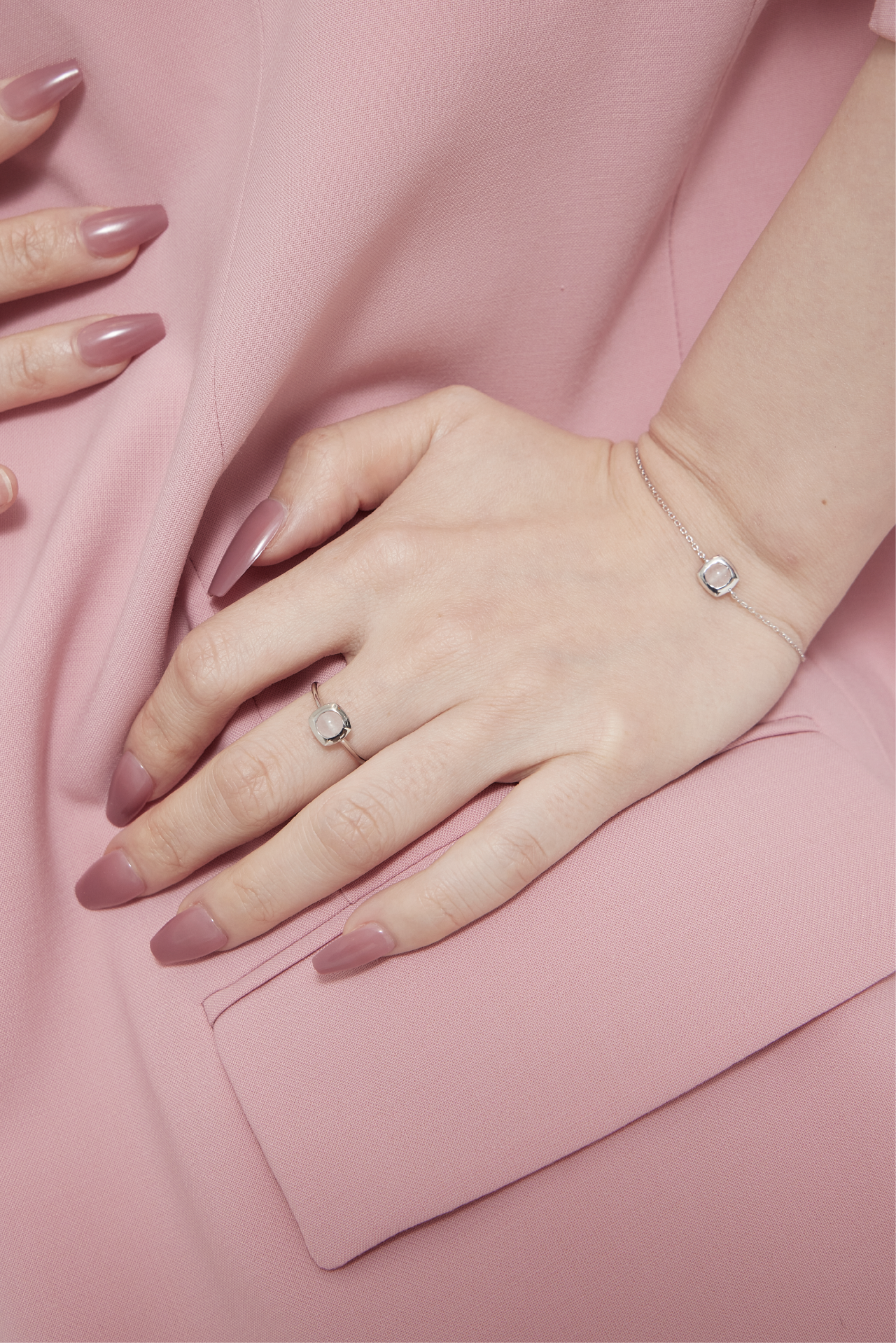 Material : Rose Quartz, 14K White Gold