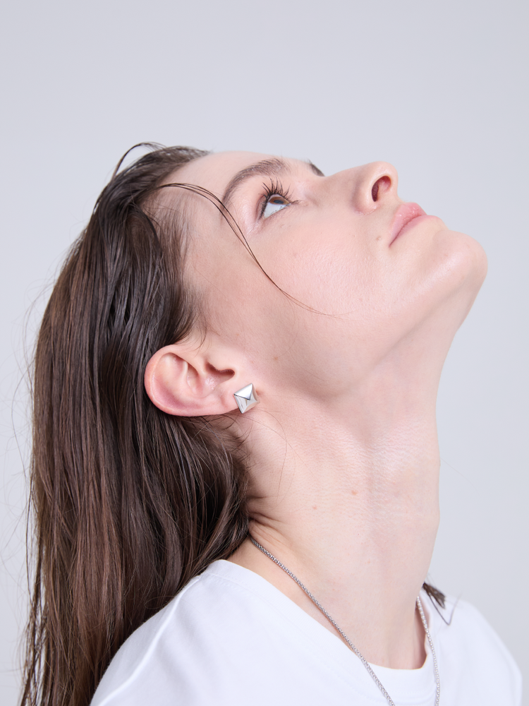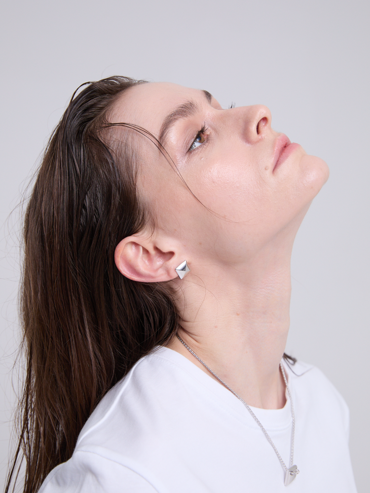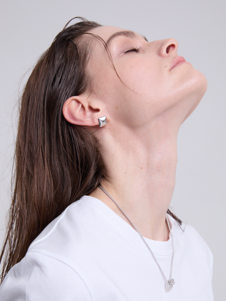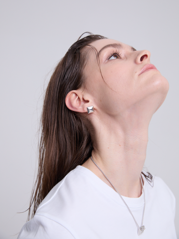 Pyramid Bold Stud Earrings (Silver)